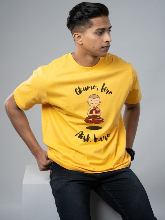 Roads to India® Cotton T-Shirt for Men – Ghumo Firo Graphic Print Tee | Half Sleeve Round Neck | Unisex Regular & Oversized Fit | 180/220 GSM | White, Golden Yellow | S to 5XL