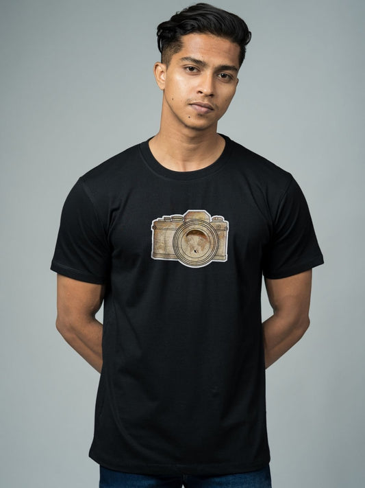 Roads to India® Men's Pure Cotton Travel T-Shirt – Photographer Graphic Tee | Unisex Fit (Regular & Oversized) | 180/220 GSM | Half Sleeve, Round Neck | S–5XL | Black, Navy Blue