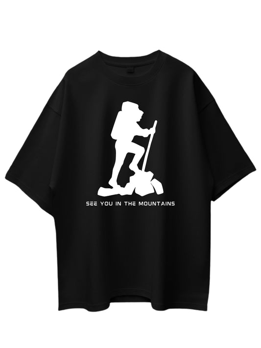 Roads to India® Men's Pure Cotton Travel T-Shirt – See You in the Mountains Graphic Tee | Unisex Fit (Regular & Oversized) | 180/220 GSM | Half Sleeve, Round Neck | S–5XL | Black