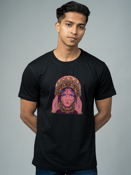 Roads to India® T-Shirt for Men – 100% Cotton Durga Illustration Half Sleeve Round Neck Graphic Print Tee | Unisex Regular & Oversized Fit | 180/220 GSM | S–5XL | Black, Navy Blue, White