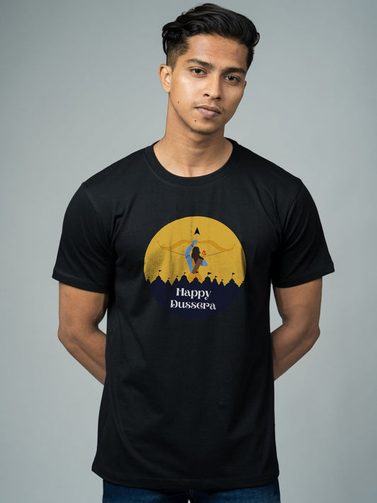 Roads to India® T-Shirt for Men – 100% Cotton Dussera Sticker Half Sleeve Round Neck Graphic Print Tee | Unisex Regular & Oversized Fit | 180/220 GSM | S–5XL | White, Black, Grey