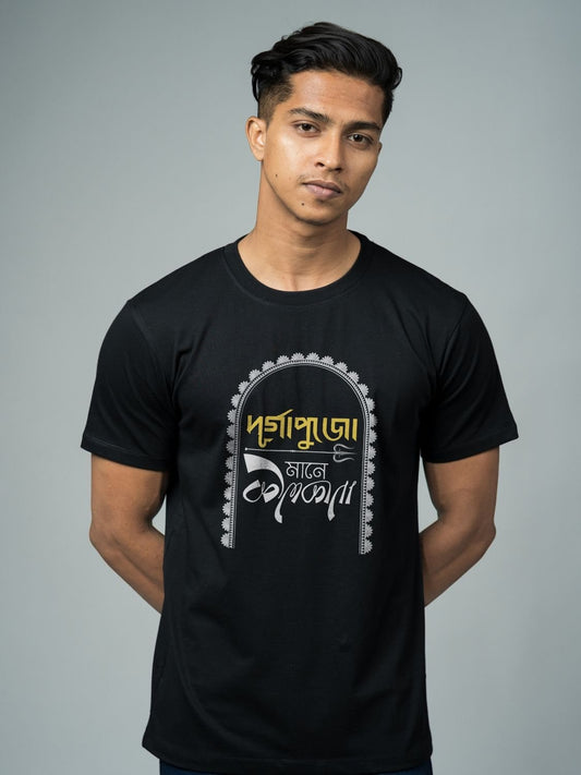 Roads to India® T-Shirt for Men – 100% Cotton Durga Pujo Mane Kolkata Half Sleeve Round Neck Graphic Print Tee | Unisex Regular & Oversized Fit | Unisex 180/220 GSM | S–5XL | Black, Navy Blue