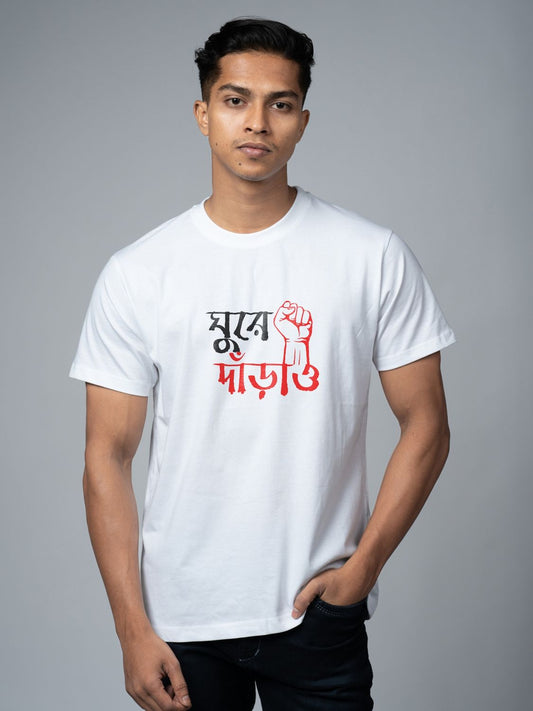 Roads to India® T-Shirt for Men – 100% Cotton Ghure Darao Bengali Half Sleeve Round Neck Graphic Print Tee | Unisex Regular & Oversized Fit | 180/220 GSM | S–5XL | White