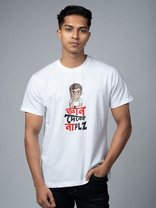 Roads to India® T-Shirt for Men – 100% Cotton Gyan Deben Na Bengali Half Sleeve Round Neck Graphic Print Tee | Unisex Regular & Oversized Fit | 180/220 GSM | S–5XL | White