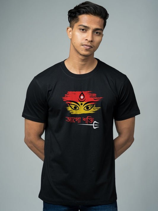 Roads to India® T-Shirt for Men – 100% Cotton Joy Maa Durga Half Sleeve Round Neck Graphic Print Tee | Unisex Regular & Oversized Fit | Unisex 180/220 GSM | S–5XL | Black, Olive Green, Grey