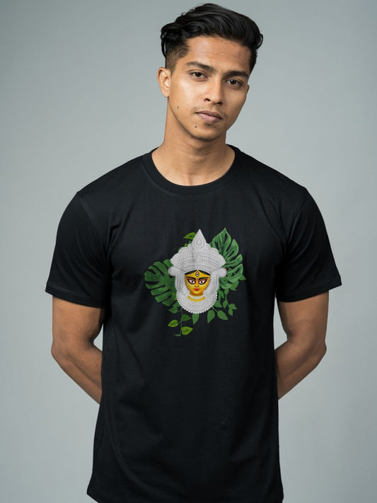 Roads to India® T-Shirt for Men – 100% Cotton Maa Durga Half Sleeve Round Neck Graphic Print Tee | Unisex Regular & Oversized Fit | Unisex 180/220 GSM | S–5XL | Black, Navy Blue