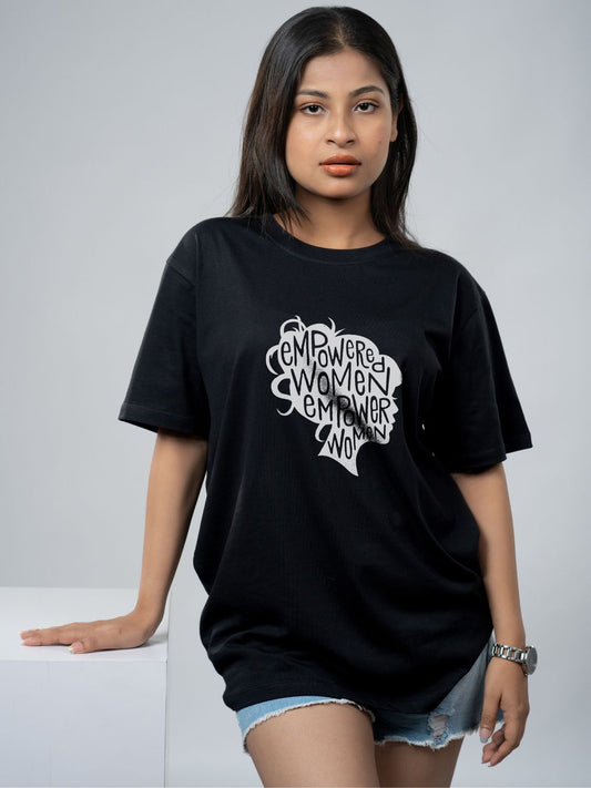 Roads to India® Women's Pure Cotton Casual T-Shirt – Empowered Women Graphic Tee | Unisex Fit (Regular & Oversized) | 180/220 GSM | Half Sleeve, Round Neck | S–5XL | Black, Navy Blue, White, Red