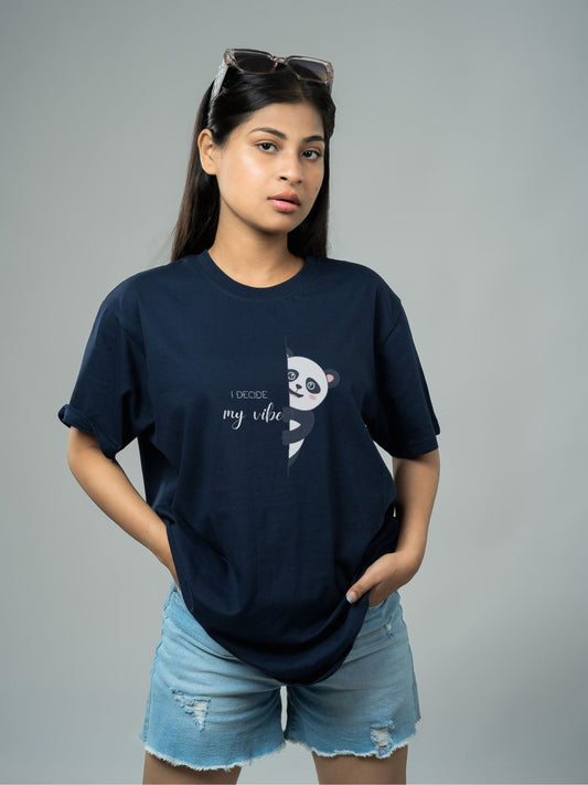 Roads to India® Women's Pure Cotton Casual T-Shirt – I Decide My Vibe Graphic Tee | Unisex Fit (Regular & Oversized) | 180/220 GSM | Half Sleeve, Round Neck | S–5XL | Navy Blue, White, Red