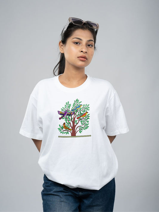 Roads to India® Women's Pure Cotton Casual T-Shirt – Happy Life Graphic Tee | Unisex Fit (Regular & Oversized) | 180/220 GSM | Half Sleeve, Round Neck | S–5XL | White