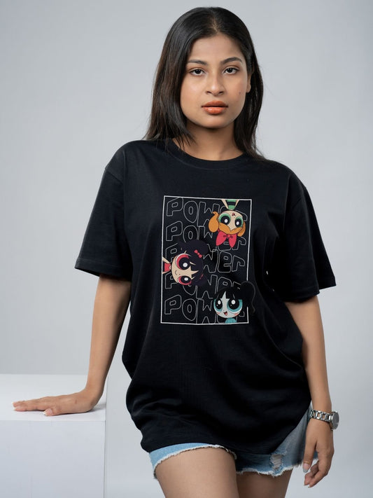 Roads to India® Women's Pure Cotton Travel T-Shirt – Power Puff Girls Graphic Tee | Drop Shoulder, Women's Fit (Regular & Oversized) | 180/220 GSM | Half Sleeve, Round Neck | Sizes S–5XL | Black, Red