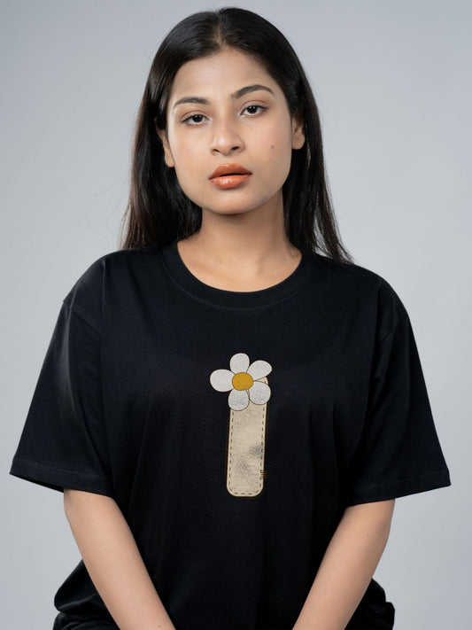Roads to India® Women's Pure Cotton Casual T-Shirt – I-Name Art Alphabet Graphic Tee | Unisex Fit (Regular & Oversized) | 180/220 GSM | Half Sleeve, Round Neck | S–5XL | Black, Navy Blue, Red