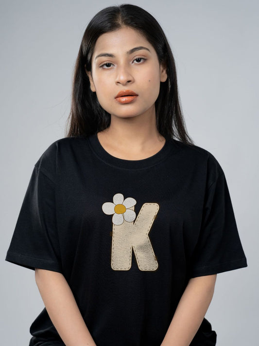 Roads to India® Women's Pure Cotton Casual T-Shirt – K-Name Art Alphabet Graphic Tee | Unisex Fit (Regular & Oversized) | 180/220 GSM | Half Sleeve, Round Neck | S–5XL | Black, Navy Blue, Red