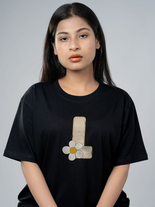 Roads to India® Women's Pure Cotton Casual T-Shirt – L-Name Art Alphabet Graphic Tee | Unisex Fit (Regular & Oversized) | 180/220 GSM | Half Sleeve, Round Neck | S–5XL | Black, Navy Blue, Red