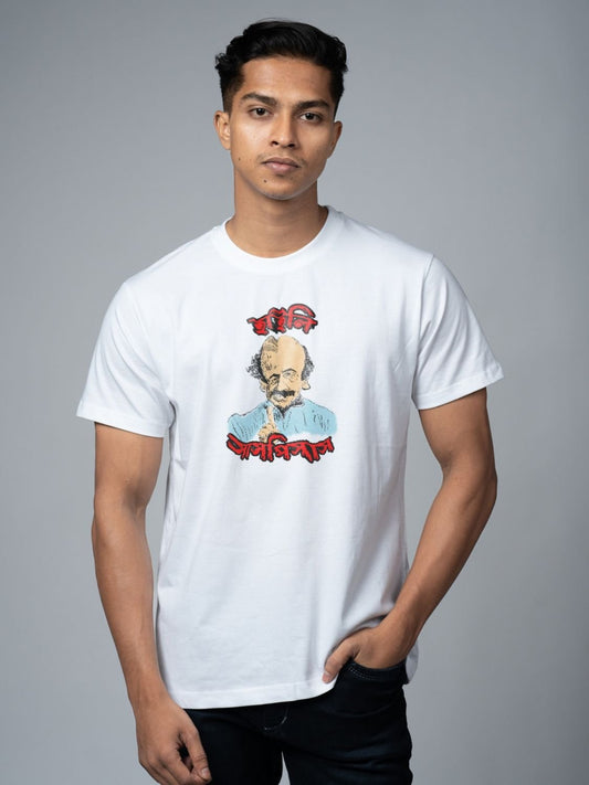 Roads to India® Men's Pure Cotton Casual T-Shirt – Tumi Robe Nirobe Bengali Quote Tee | Unisex Fit (Regular & Oversized) | 180/220 GSM | Half Sleeve, Round Neck | S–5XL | White