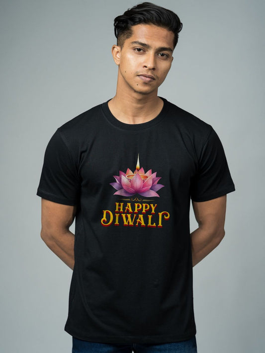 Roads to India® Diwali Lotus 2025 Celebration T-Shirt for Men – 100% Cotton | Half Sleeve Round Neck Graphic Print Tee | Soft, Breathable & Durable 180 GSM Fabric | Festive Comfort Wear