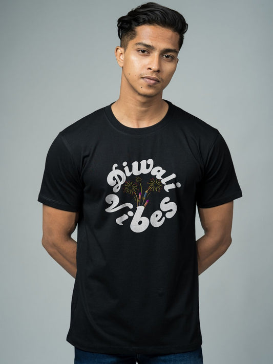 Roads to India® Diwali Vibes 2025 Celebration T-Shirt for Men – 100% Cotton | Half Sleeve Round Neck Graphic Print Tee | Soft, Breathable & Durable 180 GSM Fabric | Festive Comfort Wear