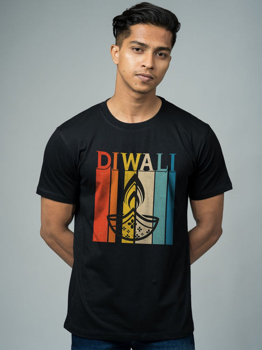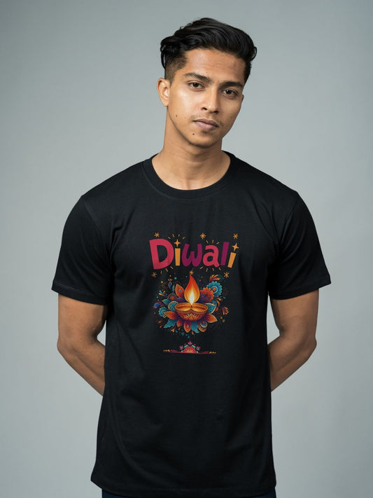 Roads to India® Celebrate Diwali 2025 Celebration T-Shirt for Men – 100% Cotton | Half Sleeve Round Neck Graphic Print Tee | Soft, Breathable & Durable 180 GSM Fabric | Festive Comfort Wear