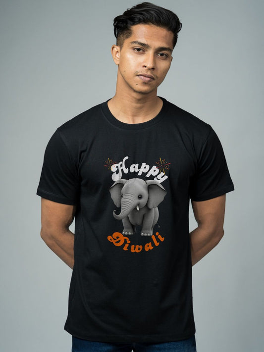 Roads to India® Diwali Elephant 2025 Celebration T-Shirt for Men – 100% Cotton | Half Sleeve Round Neck Graphic Print Tee | Soft, Breathable & Durable 180 GSM Fabric | Festive Comfort Wear