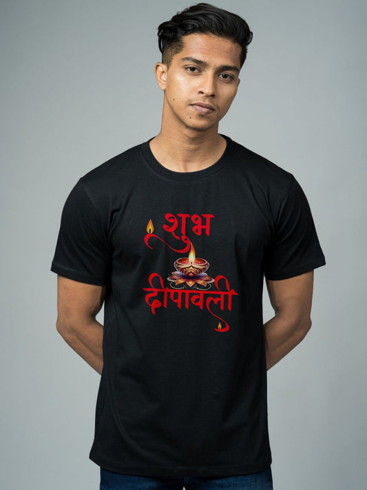 Roads to India® Subh Deepabali 2025 Celebration T-Shirt for Men – 100% Cotton | Half Sleeve Round Neck Graphic Print Tee | Soft, Breathable & Durable 180 GSM Fabric | Festive Comfort Wear