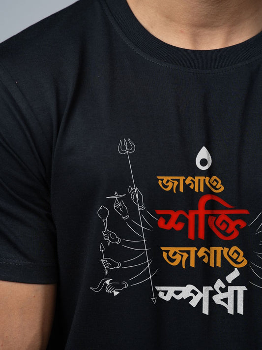 Roads to India® Men's Cotton Festival T-Shirt – Jagao Shakti Graphic Print Tee | Unisex Fit (Regular & Oversized) | 180/220 GSM | Half Sleeve, Round Neck | S–5XL | Black, Olive Green, Red