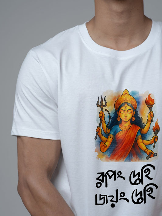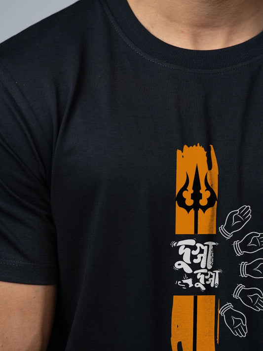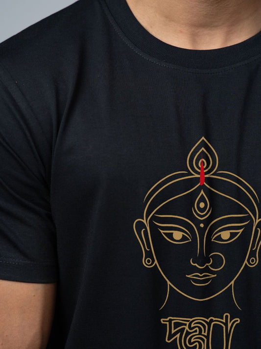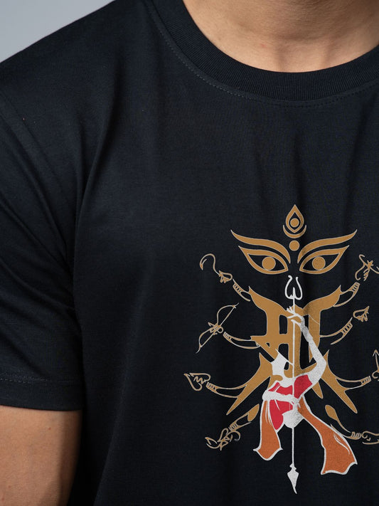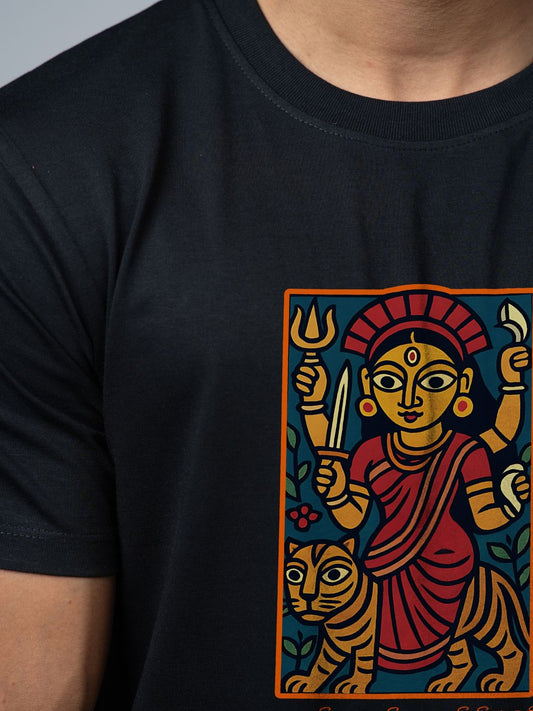 Roads to India® Men's Cotton Festival T-Shirt – Durga Maa Graphic Print Tee | Unisex Fit (Regular & Oversized) | 180/220 GSM | Half Sleeve, Round Neck | S–5XL | Black, Olive Green, Red