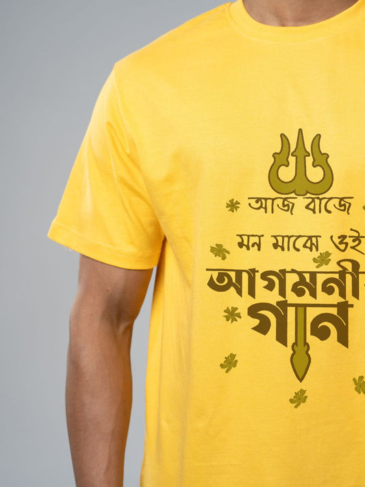 Roads to India® Men's Cotton Festival T-Shirt – Agomonir Gaan Graphic Print Tee | Unisex Fit (Regular & Oversized) | 180/220 GSM | Half Sleeve, Round Neck | S–5XL | Black, Olive Green, Red