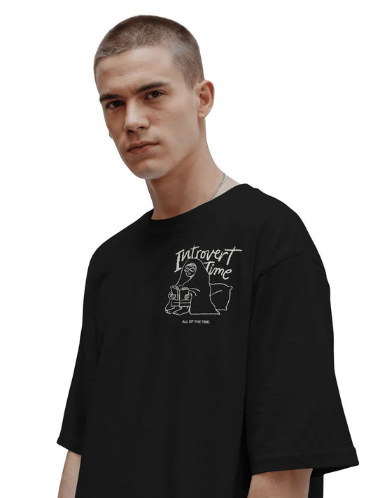 Roads to India® Spooky Collection| Introvert Time | Oversized 220 GSM Graphic Tee (Unisex Streetwear)