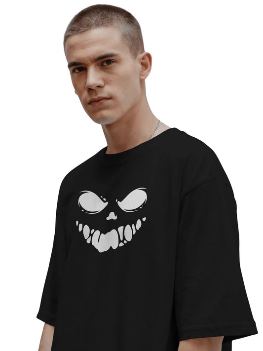 Roads to India® Spooky Collection| Evil Smile | Oversized 220 GSM Graphic Tee (Unisex Streetwear)