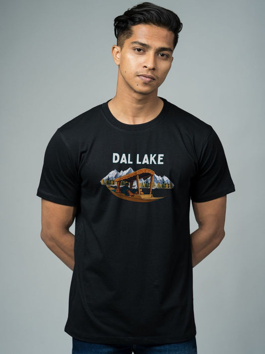 Roads to India® Pure Cotton Regular, Oversized Travel t-shirt for Men - Dal Lake - Unisex Round Neck Printed Casual fit Drop Shoulder 180-220 GSM | S - 5XL | Black, Blue, White