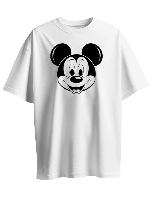 Roads to India® Pure Cotton Casual T-Shirt – Mickey Face Graphic Tee | Unisex Fit (Regular & Oversize) | 180/220 GSM | Half Sleeve, Round Neck | S–5XL