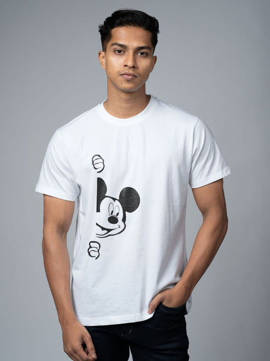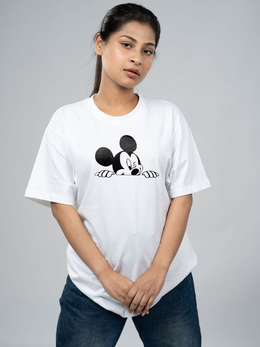 Roads to India® Pure Cotton Casual T-Shirt – Mickey Peeking Graphic Tee | Unisex Fit (Regular & Oversize) | 180/220 GSM | Half Sleeve, Round Neck | S–5XL