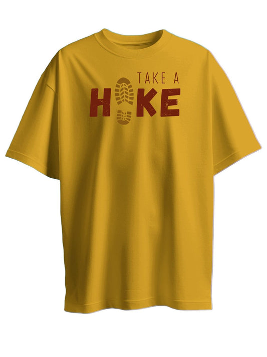 Roads to India® Cotton T-Shirt for Men – TAKE A HIKE Graphic Print Tee | Half Sleeve Round Neck | Unisex Regular Fit | 180/220 GSM | White, Golden Yellow | S to 2XL