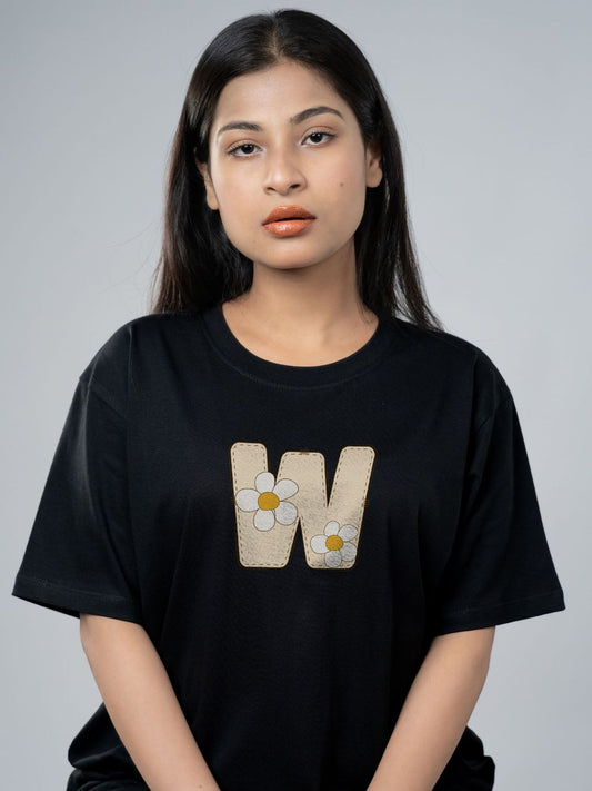 Roads to India® Women's Pure Cotton Casual T-Shirt – W-Name Art Alphabet Graphic Tee | Unisex Fit (Regular & Oversized) | 180/220 GSM | Half Sleeve, Round Neck | S–5XL | Black, Navy Blue, Red