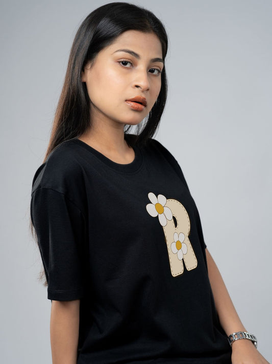 Roads to India® Women's Pure Cotton Casual T-Shirt – R-Name Art Alphabet Graphic Tee | Unisex Fit (Regular & Oversized) | 180/220 GSM | Half Sleeve, Round Neck | S–5XL | Black, Navy Blue, Red