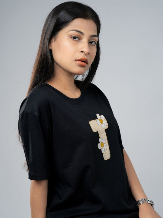 Roads to India® Women's Pure Cotton Casual T-Shirt – T-Name Art Alphabet Graphic Tee | Unisex Fit (Regular & Oversized) | 180/220 GSM | Half Sleeve, Round Neck | S–5XL | Black, Navy Blue, Red