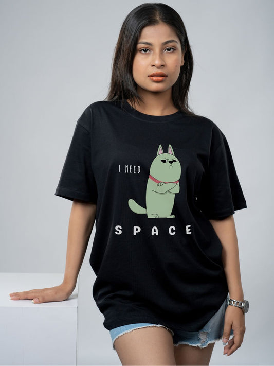 Roads to India® Women's Pure Cotton Travel T-Shirt – I Need Space Graphic Tee | Drop Shoulder, Wemen's Fit (Regular & Oversized) | 180/220 GSM | Half Sleeve | S–5XL | Black, GYellow, Nevy Blue, Red