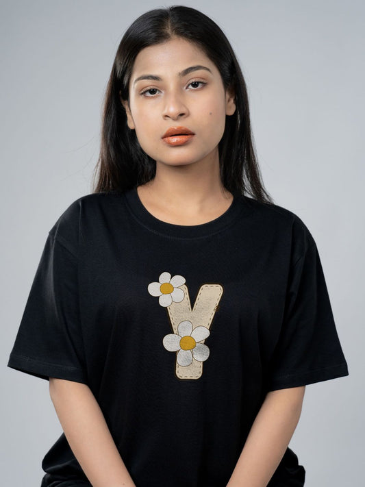 Roads to India® Women's Pure Cotton Casual T-Shirt – Y-Name Art Alphabet Graphic Tee | Unisex Fit (Regular & Oversized) | 180/220 GSM | Half Sleeve, Round Neck | S–5XL | Black, Navy Blue, Red