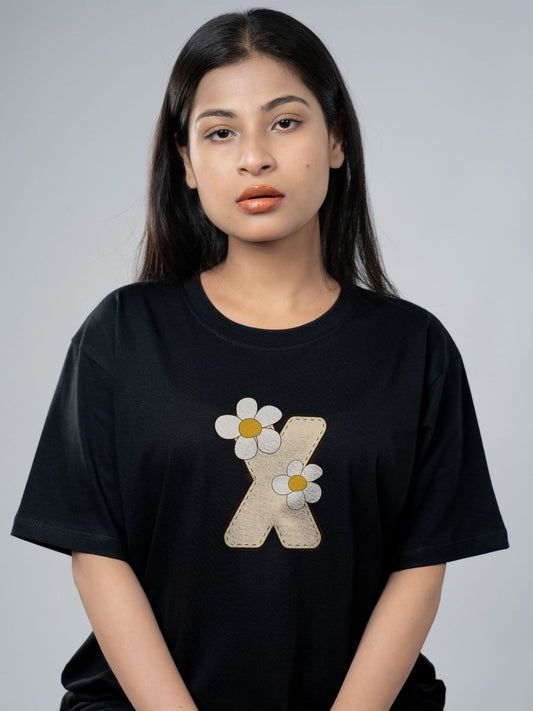 Roads to India® Women's Pure Cotton Casual T-Shirt – X-Name Art Alphabet Graphic Tee | Unisex Fit (Regular & Oversized) | 180/220 GSM | Half Sleeve, Round Neck | S–5XL | Black, Navy Blue, Red