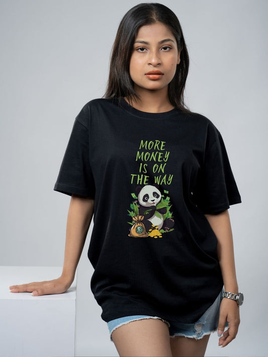 Roads to India® Women's Pure Cotton Travel T-Shirt – More Money Graphic Tee | Drop Shoulder, Women's Fit (Regular & Oversized) | 180/220 GSM | Half Sleeve, Round Neck | Sizes S–5XL | Black, Blue, Red