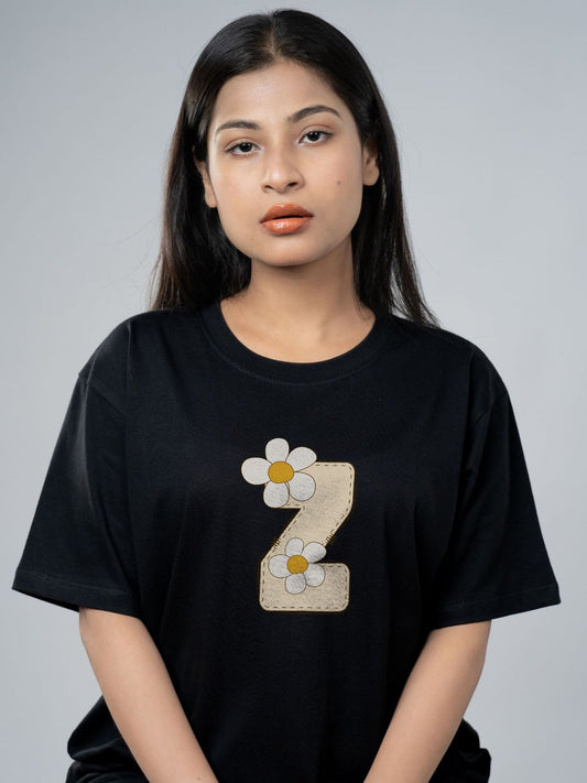 Roads to India® Women's Pure Cotton Casual T-Shirt – Z-Name Art Alphabet Graphic Tee | Unisex Fit (Regular & Oversized) | 180/220 GSM | Half Sleeve, Round Neck | S–5XL | Black, Navy Blue, Red