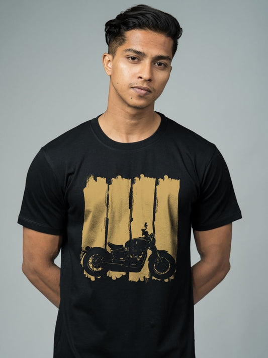 Roads to India® T-Shirt for Men – 100% Cotton Motorcycle Doodle Half Sleeve Round Neck Graphic Print Tee | Regular & Oversized Fit | 180/220 GSM | S–5XL | Navy Blue, Black