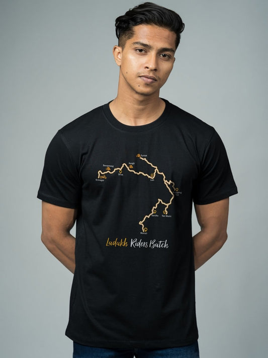 Roads to India® Cotton T-Shirt for Men – Ladakh Riders Batch Motorcycle Graphic Tee | Half Sleeve Round Neck | Unisex Regular & Oversized Fit | 180/220 GSM | Black, Navy Blue | S to 5XL