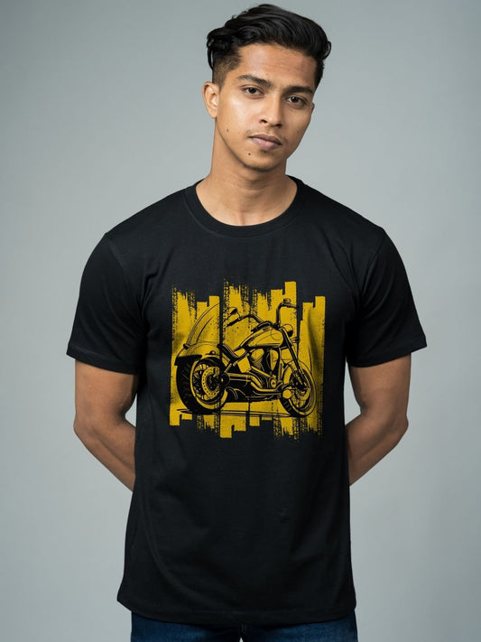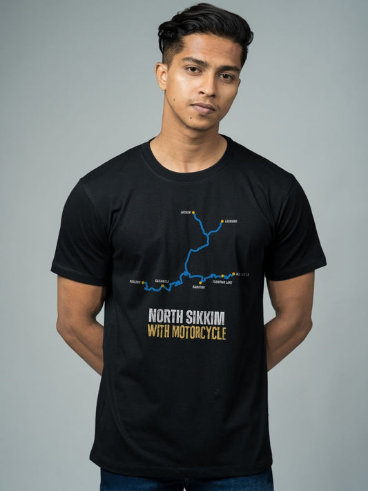 Roads to India® Men's Cotton Motorcycle T-Shirt – North Sikkim with Motorcycle Graphic Tee | Unisex Fit (Regular & Oversized) | 180/220 GSM | Half Sleeve, Round Neck | S–5XL | Black, Navy Blue