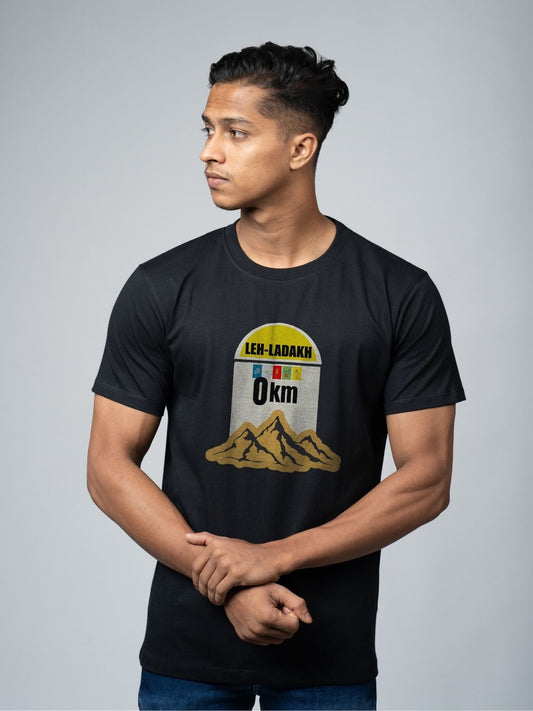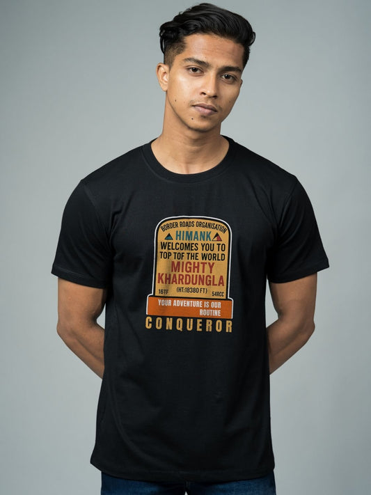 Roads to India® Men's Pure Cotton Trekking T-Shirt – Khardung La Graphic Tee | Unisex Fit (Regular & Oversized) | 180/220 GSM | Half Sleeve, Round Neck | S–5XL | Black, Navy Blue