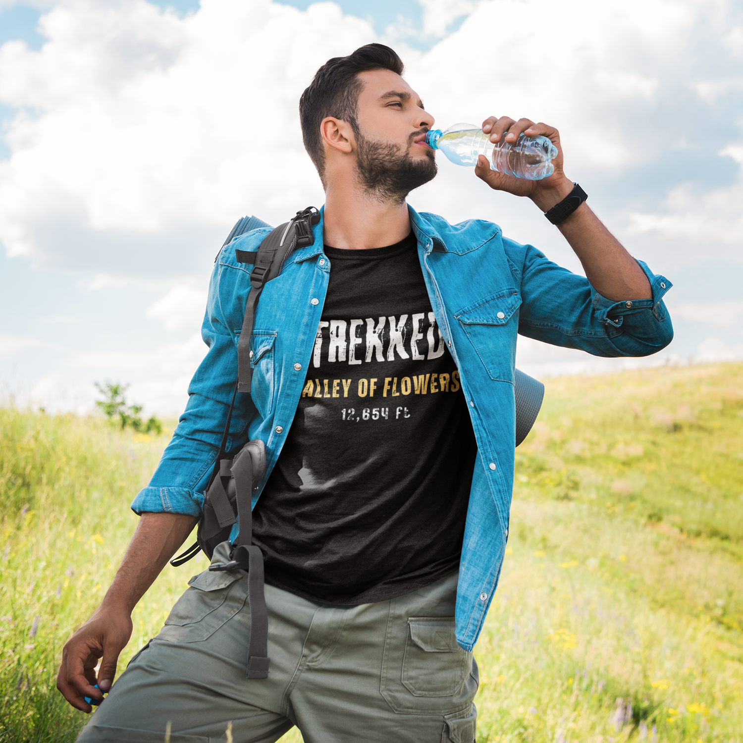 Roads to India® Men's Cotton Trekking T-Shirt – Trekked Chadar Graphic Tee | Unisex Fit (Regular & Oversized) | 180/220 GSM | Half Sleeve, Round Neck | S–5XL | Black, Navy Blue